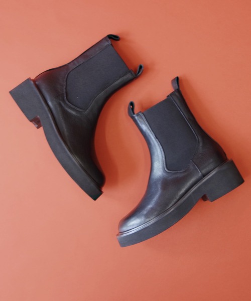 25AW【足元にボリュームとエッジを。上質レザーで魅せる大人のサイドゴアブーツ】無駄のないミニマルなデザインと、軽量ながら存在感のある厚底ソールが魅力のサイドゴアブーツ。程よいボリュームで足元にモードな印象をプラスしながらも、コーディネートを選ばず使える万能さが魅力です。アッパーにはイタリア製ならではの上質な本革を使用し、履き込むほどに足に馴染んでいく一足。サイドのゴア部分が伸縮するので、脱ぎ履きもスムーズ。しっかり安定感のあるヒール高で歩きやすく、デイリー使いにぴったりです。◎スカートに合わせて程よく甘辛MIXフェミニンなスカートやワンピースに、あえてボリュームブーツを合わせてバランスの取れた旬なスタイルに。◎ワイドパンツやデニムと合わせて王道カジュアルに足首が見え隠れする丈感が、ボトムスのシルエットもきれいにキープ。ブラックのワントーンでまとめればぐっと大人な印象に。◎モノトーンコーデに足元で重みを白シャツ×黒パンツなどシンプルな着こなしに、このブーツを合わせるだけで一気にモード感UP。おすすめポイント・イタリア製の上質レザーアッパー・厚底なのに軽量で歩きやすいソール・脱ぎ履きしやすいサイドゴア仕様・シンプルで飽きのこないミニマルデザイン・秋冬~春まで長く活躍するミドルブーツ甲幅:14.5㎝筒周り:15.5cm筒丈:17.0cmヒール高:5.0cm底幅:10.3cm重量(片足):420g37インチにて測定。【ブランド紹介】ファビオルスコーニは、1998年に設立されたイタリア・フィレンツェにあるレディースシューズブランド。 美しいシルエットと履き心地を兼ね備えたアイテムは、今やイタリアシューズの代名詞となっています。