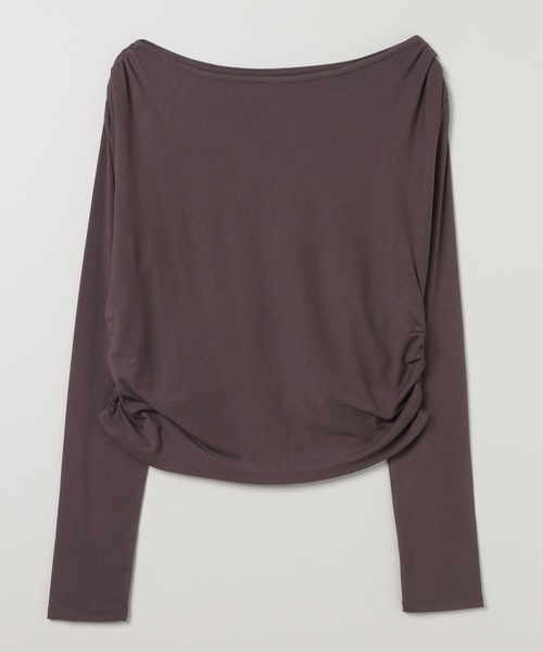 ーーー大人可愛いこなれスタイリングが叶う★スタイルアップ効果抜群のギャザーカットソーーーー■DesignアシンメトリーのウエストギャザーがポイントのTシャツ。ギャザーは身体のラインをすっきり魅せ、どんなボトムとも相性の良い着丈に。首元は広めのボートネックなので、今年トレンドのワンショルダーの着こなしが楽しめます。■Material伸縮性に優れ、着用時のストレスが少ないところがポイントです。肌当たりも柔らかなので、着心地◎■Stylingバルーンパンツやスウェットパンツのような、カジュアルボトムと合わせたスタイリングがオススメです。-INFORMATION-◆お買い物をよりお楽しみいただく為に『♡』をクリックしてお気に入り登録がおすすめ!・完売カラーの再入荷通知や、ラスト1点の通知、セールになった際も通知を受け取ることができます★◆ブランドのお気に入り登録新商品や再入荷など、お得な情報を受け取ることができますので、是非ご登録ください♪※屋外の光や照明の当たり具合で、実際の商品の色味とカラー別画像の色味に違いが発生する場合がございます。 商品の色味はスタジオ撮影の詳細画像にてご確認ください。