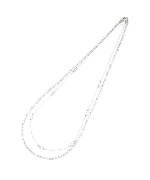 【デザイン】 デザインチェーンの2連ネックレス。 どちらのチェーンも単品での使用が可能で、重ね付けのアレンジも楽しめます。 シーズン問わず活躍するアイテムです。 【コーディネート】 Tシャツやカットソーと合わせてカジュアルスタイルに。 お手持ちのネックレスと合わせると華やかな首元を演出していただけます。 ※照明の関係により、実際よりも色味が違って見える場合があります。また、パソコン・スマートフォンなどの環境により、若干製品と画像のカラーが異なる場合もございます。 店舗へのお問い合わせ商品番号:153-01132 ●製品寸法: FREE:全長74.5cm 幅0.3cm 備考: