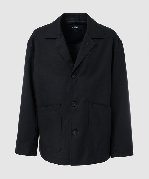 ブルゾンタイプのジャケットは三つボタンにフロントサイドの大きなポケットがアクセントとなるカジュアル仕様となったデザイン。生地には滑らかなさわり心地と高級感のあるウールサージを使用する事でブルゾンの様なカジュアルさにジャケットの様なフォーマルさがプラスされた大人っぽさが特徴。絞りのないゆったりとしたシルエットに肩パットの入らないアンコン仕様に、背中・袖裏まで裏地がはられており、気軽に羽織れる便利さも魅力の一枚です。This jacket has a casual look that resembles a work jacket, with three buttons and a large front pocket as an accent. The fabric is made of wool serge, which is smooth to the touch and luxurious, giving it a mature look that combines the casualness of a blouson with the formality of a jacket. It has a loose silhouette with no tightness and is unconstructed with no shoulder pads, making it an attractive piece that is easy to throw on.