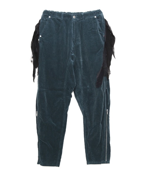 2025 Autumn-Winter WOMEN’S PRE-COLLECTION コットンコーデュロイパンツ サイドジッパー サイドにシフォンフリンジ 伸縮性のあるウエスト バックにパッチポケット