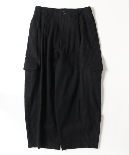 my beautiful landlet自身が愛着のある物をその時代に落とし込み、共に共有したいとの思い。シーズン毎にコンセプトは設けず、ブランドとしてのカラー・シルエット・素材選びを大切にしています。I would like to bring an attached article to this period of era and share them. It is important for me to choose a brand's color, form and material without a seasonal concept.------------------------------------------------------コットンウールの綾織り素材を縮絨加工した無地とストライプ柄を掛け合わせ仕立てました。