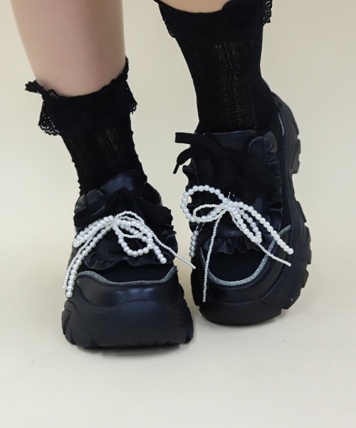 【アイテム説明】 POETIQUE “Preppy” collection ♡ 【商品紹介】 パールリボンチャームがポイントの厚底スニーカー 【デザイン】 リボンやフリルなどガーリーなディテールをぎゅっと詰め込んだスニーカーです。 厚底すぎないソールでボトムを選ばずに合わせやすいデザイン。 パールリボンチャームはお好きな位置に付けていただけます。 【コーディネート】 コーディネートを程よくカジュアルダウンさせてくれるアイテムです。 ▽ axes femme POETIQUE * アクシーズファムポエティック 【Concept】 一編の詩のように紡がれる、 柔らかな色や優しいモチーフに心を弾ませて。 夢見る気持ちを忘れない、とっておきのクローゼット。 フリルやオリジナルプリントをあしらったガーリーなアイテムと デイリー使いにもおすすめのトレンド感もあるガーリーカジュアルなアイテムで 王道ガーリースタイルからミックスコーデまで様々な着こなしがお楽しみ頂けます。 ********************** .。.: お気に入り登録のおすすめ :.。. ∇気になるアイテムを登録∇ ハートをクリックしてお気に入りに登録すると 完売カラーの再入荷やラスト1点の通知、セールの通知を受けとることができます。 ∇ブランドを登録∇ 新商品や再入荷、セール通知など、いち早くブランドの情報を受けとることができます。 是非ご利用頂き、お買い物をお楽しみ下さい。 .。.: 商品について :.。. ・サイト上のカラー名と、お届け商品に記載されているカラー名が異なる場合がございます。 ・商品の色味は、撮影場所や光のあたり具合、お客様のお使いのPCのモニター環境などにより色味が違って見える場合がございます。 予めご了承の上ご注文下さい。 .。.: 返品・キャンセルについて :.。. ・着用、洗濯後の返品は致かねます。 ・商品到着後、着用前に商品を確認して頂きますようお願い致します。