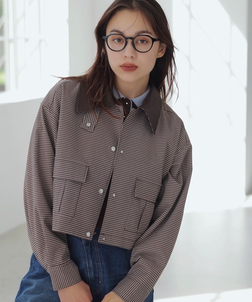 チェック柄でトレンドを取り入れる初秋に嬉しいショート丈カバーオール。◆2025秋冬◆<POINT>・細かなチェック柄がトレンド感を演出・着回しのきく短丈のボクシーなシルエット・秋口のライトアウターとしておすすめ!【デザイン・シルエット】細かいチェック柄がポイントのカバーオール。ハンサムな印象になりがちなアイテムなのでボクシーなシルエットでコンパクトに仕上げました。ショート丈と言っても短すぎない着丈感で着回しがききます。身頃のチェックに対して襟は合皮を使用しているのでより重厚感が出てスタイリングにメリハリを持たせます。釦付きのタブで襟を立てることも出来ます。袖口の大きさもサイズ調整が可能。【素材】程よく厚みのある素材。秋の始まりに少し肌寒い日、何を羽織っていいのか悩んだときにさっと羽織って防寒かつトレンドも取り入れられるアイテムです。【カラー】ブラウン系、ベージュの2色展開。秋を感じつつも、季節をまたいでも着まわしやすいカラーをセレクト。【おすすめのスタイリング】レースや表面感のあるスカートでレディな印象にこなすのがおすすめです!もちろんデニムなどカジュアルにスタイリングするのも◎。-----------------------------裏地:あり光沢感:なし透け感:なし伸縮性:なしポケット:ありボタン:あり(開閉可)生地の厚さ:普通季節:春、秋-----------------------------【モデル着用サイズ】メイン着用モデル身長:167cm、着用サイズ:F詳細モデル身長:165cm、着用サイズ:F※画像の商品はサンプルです。 実際の商品と仕様、加工、サイズが若干異なる場合がございます。※画像によっては実際の色味と異なる場合があります。正しい色味は生地アップ画像をご確認ください。