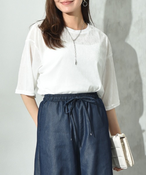 これ1枚で旬なコーディネートにシアーベロアでおしゃれ感アップ着こなしのニュアンスアップに欠かせない、シアー素材にベロアをハイブリットしたプルオーバー。ゆとりのあるシルエットでフィットしすぎないのも嬉しいポイントです。Tシャツ感覚で着まわせ、そのままさらりと着たり、ジャンパースカートやワンピースのインナーにも良く合います。【取り扱い】ご自宅でイージーケア(手洗い)ができます。 INTERPLANET/actuel(インタープラネット/アクチュエル)・conceptいつだって私らしく、私自身のスタイルが決まる。。。時代や年齢に媚びない『らしさ』を纏って生きる女性へ。旬なベーシックと抜け感のあるカジュアルをMIX。そんな大人カジュアルコーデを提案します。・お気に入りの登録についてショップ、ブランドのお気に入り登録でクーポンやタイムセールの通知などお得な情報を受け取ることができます♪また、気になるアイテムのお気に入り登録でセールや再入荷の通知など受け取ることができます。