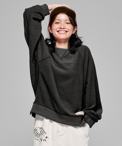 《KRIFF MAYER 秋冬アイテム「ブークレドルマンクルー」》軽くて暖かいのが大好評!肌触りも柔らかく、ふんわりした風合いが特徴のオリジナルブークレ素材を使用したドルマンクルーです。 配色のパイピングテープが特徴の一枚! テープに合わせたガゼット部分のステッチも配色になっています。 裾にはオリジナルのプリントネーム入り! ゆったりめのシルエットで楽に着られるアイテムです。こちらのアイテムは同素材の、ジップパーカー(品番:W2517832)カーディガン(品番:W2517833)も展開しております。-------------------------シルエット:ワイド生地の厚さ:中肉透け感:なし伸縮性:あり裏地:なしケア方法:洗濯機洗い可(ネット使用)-------------------------●KRIFF MAYER(クリフメイヤー)家族みんなの毎日に楽しさと笑顔をお届けしたい。クリフメイヤーの服にはそんな思いがたくさん詰め込まれています。メンズ・レディース・キッズ、更にドッグウェアまで展開。何気ない日々が特別な思い出に変わる瞬間を演出する、ベーシックかつオリジナリティーあふれる新しいデイリーウエアを提案します。