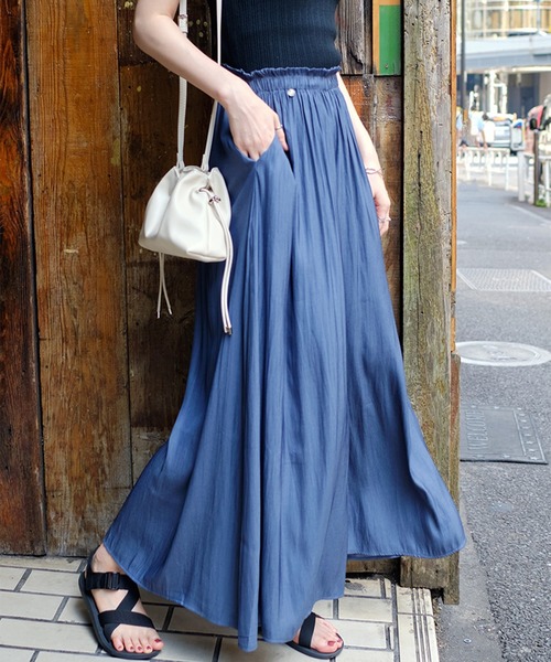 たっぷり取った要尺がスカート見えするスーパーワイドパンツ。イージーな穿き心地でワンマイルウェアやリラックスウェアにもお使いいただけます。通気性がよく、さらっとした風合いの生地が夏も快適。着脱が簡単でラクチンなウエストゴム仕様も嬉しいポイントです。シンプルな無地は様々なトップスと組み合わせていただけます。