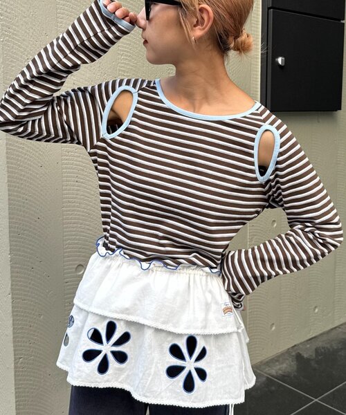 ◇いろんな気分に合わせて服を選ぶ女の子のためのシリーズ【HELLO.SANFRANCISCO】◇カジュアル&肌見せのバランスが絶妙!毎シーズン好評カットアウトトップス◎■デザインストリートムードとガーリーさをMIXした、ちょっぴり肌見せがアクセントのマルチボーダーTEEカラフルすぎず、でも存在感はしっかりある絶妙なボーダー配色で、着るだけで気分もアップ♩前側にさりげなく入ったカットアウトが、ヘルシーな肌見せを叶えてくれて、いつものTシャツスタイルをぐっと新鮮に見せてくれます◎ラグランスリーブで肩まわりに抜け感を出しながら、程よくコンパクトなシルエットに長めの袖丈が今っぽいバランス。裾はスリット入りでタックインもアウトも決まりやすく、短すぎない丈感でボトムスを選ばず着回せます。HELLO.SANFRANCISCOらしい、ちょっと攻めた可愛さを楽しめる1枚です。【HELLO.SANFRANCISCO/ハローサンフランシスコ】西海岸を代表するサンフランシスコ。年中暖かく、穏やかでフレンドリーな都市。少し懐かしさを感じる柄やアイテムを今の女の子に向けて提案。メンズライクな素材を女の子が着るシルエットに落とし込んだアイテムなどトレンドに敏感でいろんな気分に合わせて服を選ぶ女の子のためのシリーズ。■スタイリングワイドデニムやカーゴパンツでカジュアルMIXが今っぽい◎キャミやチューブトップをインナーに着ると肌見せしやすいのでおすすめです!シンプルシルエットなのでスニーカーやキャップなど小物を足すとこなれ感UP!■お手入れ方法洗濯:液温は40 ℃を限度とし、洗濯機で弱い洗濯ができるアイロン:底面温度120 ℃を限度としてアイロン仕上げができるタンブル乾燥:不可・・・・・・・・・・・・・・・・・・・・・・透け感:なし裏地:なし伸縮性:ややあり光沢感:なし生地の厚さ:普通・・・・・・・・・・・・・・・・・・・・・・▼気になる商品をお気に入り登録♡をクリックして《お気に入り登録》がオススメです!入荷情報や、クーポン情報が通知されるようになります。※画像の商品はサンプルを使用しております。実際の商品と若干の仕様が変更になる場合がございますので、予めご了承の上ご注文くださいますようお願いいたします※屋外の光や照明の当たり具合で、実際の商品の色味とカラー別画像の色味に若干の違いが発生する場合がございます。詳細画像と併せてご確認の上、ご注文いただきますようお願い致します。※独自のタイムセールなどの施策により、実店舗と価格差が発生する場合がございます。※実際の店舗在庫につきましては、各店舗に直接お問い合わせください。