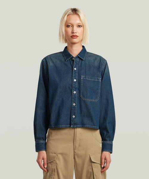 BOXY RELAXED 1-POCKET SHIRT/1ポケットクロップドリラックスデニムシャツ/オーバーサイズ