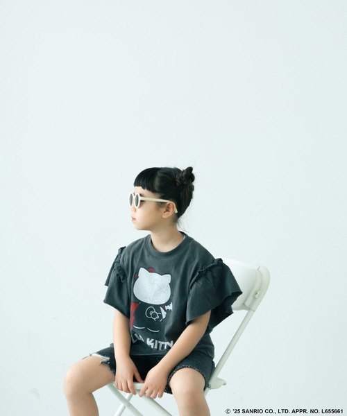 【デザイン&スタイリング】HELLO KITTYの世界観にロックな遊びゴコロを掛け合わせた、オリジナルアート。レコードや後ろ姿など、あえて顔が見えないアートにすることで可愛らしくなりすぎないのがポイント。掠れたようなプリントにすることで、ヴィンテージ感を表現。袖フリルデザインにすることで甘さをプラスした女の子がワクワクする1枚に仕上げました!スカートでもパンツにも合わせやすいアイテムです。■ハローキティ本名はキティ・ホワイト。生まれた場所はイギリス ロンドンの郊外。身長はりんご5個分。体重はりんご3個分。明るくてやさしい女のコ。クッキーを作ったりピアノを弾くのが大好きで、夢はピアニストか詩人になること。音楽と英語が得意。好きな食べ物は、ママが作ったアップルパイ。双子の妹、ミミィとは大のなかよし。(C)'25 SANRIO CO., LTD. APPR. NO. L655661