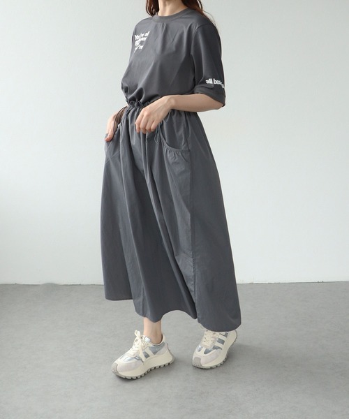 ■商品詳細 ゆったりとしたリラクシーなワンピース。お袖付きなので一枚でオシャレにキマります♪ ポイントでプリントされたロゴが大人なカジュアルにピッタリ! ウエストのドロストコードでハイウエストでマークできて スタイルアップして着る事も出来ます。 -------------------------------------- 透け感:なし 伸縮性:なし ケア方法:洗濯機可 ※お洗濯の際は洗濯表示を必ずご確認ください。 --------------------------------------