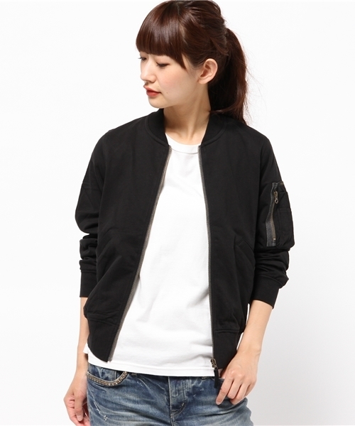 『高級感のある大人のミリタリー』 極限まで度目を詰めた天竺の表面を薄く起毛した、高級感のある素材で作った カットソー素材のMA-1ジャケット。 細部のディティールにこだわった一見布帛のようなジャケットは カットソー独特の伸縮性により、驚くほど軽く着心地の良い仕上がりに なっています。 スカートやワンピースなどレディスライクなアイテムにカジュアルさをプラスするアイテムとしても重宝するので、ワードローブの定番として活躍できるアイテムです。
