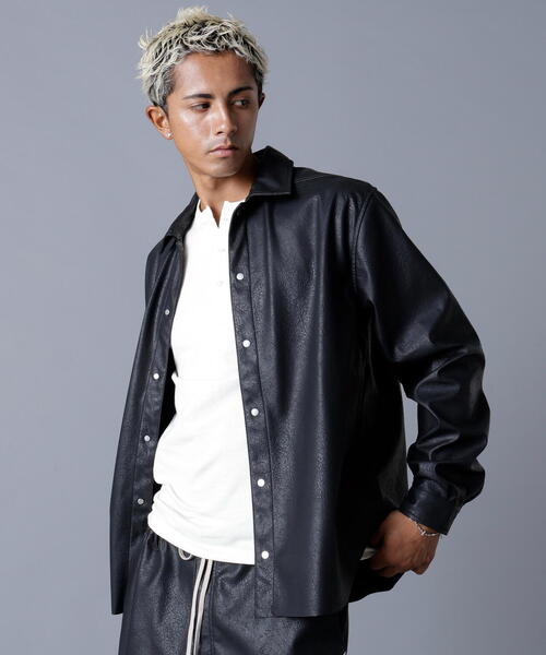 DankeSchon シックでモードな印象を放つPUレザーシャツ。上質なフェイクレザーを使用し程よい光沢感とリアルなシボ感を再現。 軽量で柔らかく快適な着心地を叶えつつ存在感のあるスタイルを演出します。フロントはスナップボタン仕様でシャツとしてはもちろん、ライトアウター感覚で羽織れる汎用性の高さも魅力。 POINT ・上品なツヤとリアルな質感のPUレザー素材 ・スナップボタンで着脱がスムーズ ・シャツジャケット感覚で着られるリラックスフィット ・モノトーンや同素材パンツとのセットアップも可能 STYLING TIP・インナーに白やグレーのTシャツを差し込むとレザーの重さが軽減され洗練されたバランスに。 ・セットアップで攻めるのはもちろんデニムやワイドパンツとのミックススタイルも◎。 1枚羽織るだけでコーデ全体を格上げする都会的でクールな万能レザーシャツです。 シーズンレスに活躍し今っぽいムードを簡単に手に入れられます。 DankeSchon・・・DankeSchonとは、このブランドの核となるキーワード D digitaliyデジタル式 A Architect創造者 N neologism新表現 K kittenish悪ふざけ E engrossing心を奪う の頭文字を組み合わせたものにドイツ語のSchonを付け、ブランドの意図に賛同してくれる人達に感謝の意味を込め、「DankeSchon(ありがとうの意味)」としている。 ファッションのテーマは「ニュースタンダード」。 時代に抗うのではなく、すり抜け受け流すことでブランドに見合う要素を抽出し、高品質な素材と、デジタライズなグラフィックを掛け合わせコレクションに落としていく。 純粋なシルエット、ディテールへの徹底したこだわりと同時に、ユニークで新しい見解も積極的に取り入れる。 そこから生み出された製品は、実用的でごく自然に日常に馴染むもの。