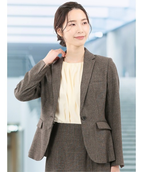 エムエフエディトリアルレディース/m.f.editorial:Womenストレッチウォッシャブル シャーク 1ボタンジャケット こげ茶(セットアップ可能)■素材特徴ウール調のポリエステル生地を使用しています。表面感のあるシャークスキンの織り柄、メランジのニュアンスのある表情、サラッとした着心地、程良い伸縮性、防シワ、ウォッシャブル機能が特徴です。裏地はポリエステルのストレッチ生地です。■機能【ストレッチ】表地・裏地共に伸縮して、ストレスフリーな着心地。【マシンウォッシャブル】洗濯機で洗えます。(要ネット・標準水流)【イージーケア】洗濯後もシワが入りにくく、アイロン掛けも簡単。■デザイン一つボタンですっきりとしたルックスに仕上げたテーラードジャケットです。袖口は着脱がスムーズなスリット入りで、折り返しても着用可能です。左胸ポケット・フラップポケット・内ポケット・ペン挿し付きです。■シルエットボディラインに自然に沿ったベーシックなシルエットです。肩からウエストにかけての絞り込みは、着る人の体型を引き立てながら凛とした佇まいを演出します。■コーディネート同素材のアイテムと合わせると、オケージョンに最適なコーディネートに仕上がります。オフィスシーンはもちろん、プライベートやセミフォーマルに、オンオフ兼用で活躍してくれます。■セットアップアイテムは下記品番をご参照ください。・シャーク フレアースカート こげ茶:120063063100523・シャーク タックテーパードパンツ こげ茶:120113063100523フィット:ベーシックシーズン:秋冬展開カラー:こげ茶(ダークブラウン)裏地:総裏仕様*こちらの商品はセット販売ではなく、単品のみの販売となります。*アテンションタグ・洗濯ネームを御確認の上、着用又は取り扱い下さい。*光の当たる場所や高温多湿になる場所での保管は避けて下さい。*使用の有無に関わらず、経年劣化は進行いたしますのでご了承下さい。* ZOZOTOWN お買い物ガイド・商品のお気に入り登録ハートマークをクリックしましょう!完売カラーの再入荷通知や、ラスト1点の通知、セールの通知をお知らせします。・ブランドのお気に入り登録新商品や再入荷など、いち早くお得な情報を受け取ることができます。・最短で翌日お届け商品をカートに入れた後、注文内容の確認ページで「即日配送」を選択していただければ、最短でご注文した翌日にお届け致します。(ZOZOTOWNお買いものガイドをご参照ください)