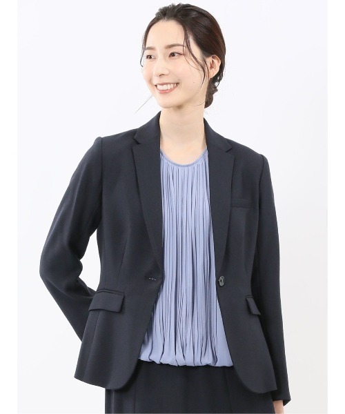 エムエフエディトリアルレディース/m.f.editorial:Womenストレッチウォッシャブル シャーク 1ボタンジャケット 紺(セットアップ可能)■素材特徴ウール調のポリエステル生地を使用しています。表面感のあるシャークスキンの織り柄、メランジのニュアンスのある表情、サラッとした着心地、程良い伸縮性、防シワ、ウォッシャブル機能が特徴です。裏地はポリエステルのストレッチ生地です。■機能【ストレッチ】表地・裏地共に伸縮して、ストレスフリーな着心地。【マシンウォッシャブル】洗濯機で洗えます。(要ネット・標準水流)【イージーケア】洗濯後もシワが入りにくく、アイロン掛けも簡単。■デザイン一つボタンですっきりとしたルックスに仕上げたテーラードジャケットです。袖口は着脱がスムーズなスリット入りで、折り返しても着用可能です。左胸ポケット・フラップポケット・内ポケット・ペン挿し付きです。■シルエットボディラインに自然に沿ったベーシックなシルエットです。肩からウエストにかけての絞り込みは、着る人の体型を引き立てながら凛とした佇まいを演出します。■コーディネート同素材のアイテムと合わせると、オケージョンに最適なコーディネートに仕上がります。オフィスシーンはもちろん、プライベートやセミフォーマルに、オンオフ兼用で活躍してくれます。■セットアップアイテムは下記品番をご参照ください。・シャーク フレアースカート 紺:120063063101523・シャーク タックテーパードパンツ 紺:120113063101523フィット:ベーシックシーズン:秋冬展開カラー:紺(ネイビー)裏地:総裏仕様*こちらの商品はセット販売ではなく、単品のみの販売となります。*アテンションタグ・洗濯ネームを御確認の上、着用又は取り扱い下さい。*光の当たる場所や高温多湿になる場所での保管は避けて下さい。*使用の有無に関わらず、経年劣化は進行いたしますのでご了承下さい。* ZOZOTOWN お買い物ガイド・商品のお気に入り登録ハートマークをクリックしましょう!完売カラーの再入荷通知や、ラスト1点の通知、セールの通知をお知らせします。・ブランドのお気に入り登録新商品や再入荷など、いち早くお得な情報を受け取ることができます。・最短で翌日お届け商品をカートに入れた後、注文内容の確認ページで「即日配送」を選択していただければ、最短でご注文した翌日にお届け致します。(ZOZOTOWNお買いものガイドをご参照ください)