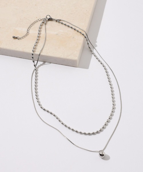 毎日使える上品ネックレス◎■ポイント幅広いスタイルと相性抜群なシルバーネックレス。中心の大きな球が印象的なアイテムです。ステンレス素材なので、金属アレルギーの方も安心して付けていただけます◎