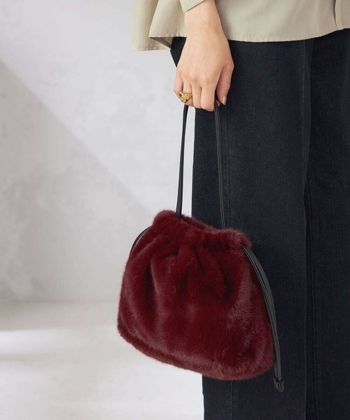 ◆もこもこフォルムがかわいい◆ 【デザイン】 エコファーのふんわり巾着バッグ 持つだけでトレンドライクなスタイリングに。 素材で季節感を演出してくれて、 一気にこなれた印象のスタイリングが決まります。 ショルダー紐をバッグの内側で結ぶことで調節可能なので、 ショルダーバッグとしてもハンドバッグとしても楽しめます! 秋を感じさせるバーガンディ、洗練された印象のカーキ、 優しい雰囲気に仕上がるアイボリーの三色展開です。 -------------------- ≪お気に入り登録機能の使い方≫ ■商品のお気に入り登録(ハートマークをクリック) 再入荷通知や値下げ等、お得なご案内を受けることができます。 -------------------- ※商品画像は、光の当たり具合やパソコンなどの閲覧環境により 実際の色味と異なって見える場合がございます。 商品の色味の目安は商品単体の画像をご参照ください。