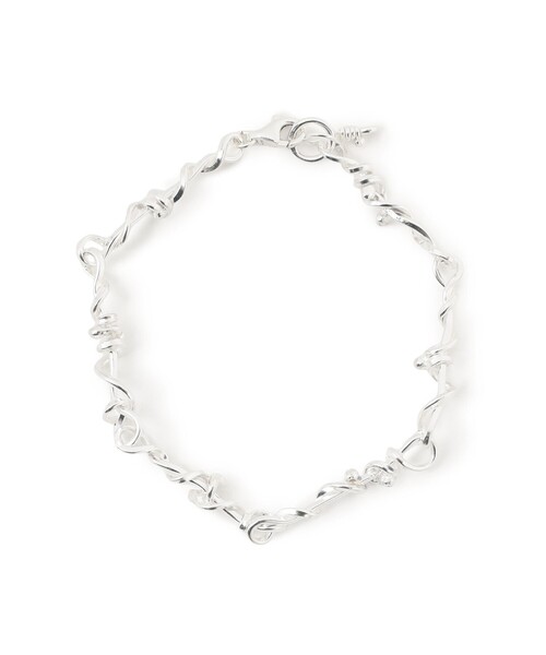 手元から存在感を放つ■デザインツイストされたチェーンが連なる、ユニークなブレスレット。どんな装いにも自然と馴染み、いつものスタイリングを格上げしてくれるアイテムです。■コーディネートシンプルなコーディネートに一点投入するだけで、グッとこなれた雰囲気に。Tシャツやニットなど、デイリーな着こなしにもマッチします。他のブレスレットや腕時計との重ね付けもおすすめ。■サイズ程よいボリューム感があり、スタイリングのアクセントとして活躍。■素材上品な輝きを放つシルバー950。カジュアルにもきれいめにも合わせやすいのが魅力。【アクセサリー・小物雑貨の取り扱いについて】・貴金属は、体質により、かゆみやかぶれを生じる場合があります。・皮膚に異常を感じた場合は直ちにご使用を止め、専門医にご相談下さい。・家事やスポーツ、就寝時や乳幼児の世話をする時などは、身体に危害を及ぼす場合がありますので着用を避けて下さい。・熱伝導が高いので、高温の場所や寒冷地での着用は火傷や凍傷の原因となりますので着用を避けて下さい。・乳幼児が誤飲しないように、保管は十分にご注意下さい。R デザイナー大塚律子が生み出すアクセサリーブランド。シルバーの持つ普遍的な素材の美しさは、日常に溶け込みながら身に付けていただくことにより、風合いが増していきます。シンプルさとバランスを考え、心地よさを大切にひとつずつ仕上げています。