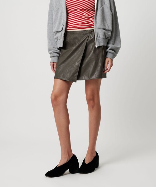 いつもの装いにプラスしてアクセサリー感覚で取り入れたいスカート ■デザイン シーズンムードが高まるレザーライクな素材で魅了するラップ型ミニスカート。 表側はさりげなく施されたレース柄とウエスト部分のリボンが印象的なディテールと、裏側はシンプルでプレーンなデザインのリバーシブル仕様です。 その日のスタイルに応じて、着方を楽しんでいただけるアイテムです。 ■素材 繊細なレース柄をエンボスさせた表情のある生地と、裏側はシンプルなレザーライクな素材を使用。 ■コーディネート スカートとしてはもちろん、デニムやレギンスなどのパンツとレイヤードさせた着こなしがトレンドライクで今シーズンはおすすめです。 ============================ 裏地:なし 透け感:なし 伸縮:なし 光沢感:ややあり ケア方法:ドライクリーニング ============================ 【注意事項】 ※商品に「取り扱い上の注意書き」、「洗濯表示」がございます場合は、使用前に必ずご確認ください。 ※商品画像は、光の当たり具合やパソコンなどの閲覧環境により、実際の色味と異なって見える場合がございます。あらかじめご了承ください。 ※商品の色味の目安は、商品単体の画像をご参照ください。 ※画像の商品はサンプルです。 店舗へお問い合わせの際は、全国のATTISESSION各店舗まで下記の品名/品番をお申し付けください。 品名:ATT L/LIKE RV WRAP 品番:56241990321