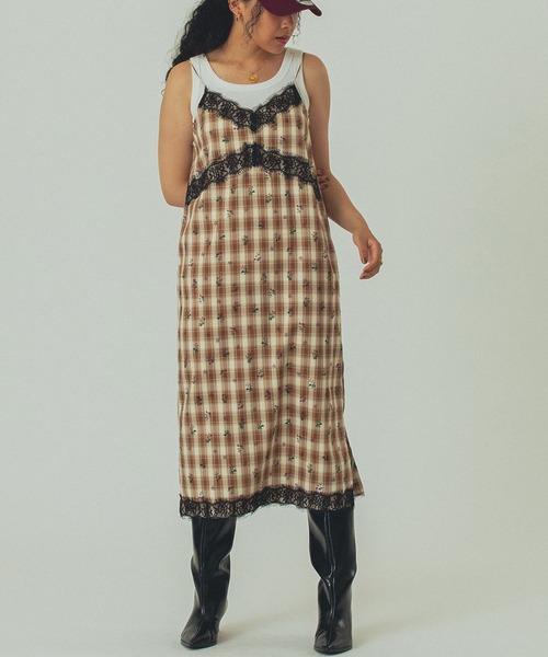 ヴィンテージ風単色チェックに小花柄をプリントしたキャミワンピース・単色チェックに小花柄を重ねたオリジナル生地・胸元と裾に贅沢なレースをあしらったデコラティブデザイン・さらっと軽い素材で暑い時期からロングシーズン着用可能・ストレートシルエットでパンツレイヤードやブーツスタイルにも好相性・同素材のシャツジャケットとセットコーデ可能・ブラック、ブラウンの2色展開商品特性透け感 : なし伸縮性 : なし生地の厚さ : 普通裏地 : なし スタッフレビュー 軽やかな素材感と華やかなレース使いが魅力のキャミワンピースです。 ストレートシルエットなので、インナーやボトムの合わせ次第でカジュアルにもフェミニンにもアレンジ可能。 同素材ジャケットと合わせると、統一感がありつつ存在感のあるスタイリングに仕上がります。 ブーツやパンツとのレイヤードで秋冬も活躍する万能アイテムです。 mag.by c「自由なスピリットを纏った新時代のヒッピースタイル」装いを通して感じる高揚感、洋服がもたらすポジティブなエネルギー。プレイフルな気持ちで「私の好き」を形にしていきます。鮮やかな色彩・クラフト技術を取り入れた多国籍なカオスさ、そして都会的でモードな一面を共存させたブランドです。お気に入り登録・商品のお気に入り登録再入荷・残り1点・セールの通知を受け取ることができます。・ブランドのお気に入り登録新商品・再入荷/・ショップおすすめトピックスなど、ブランドの情報を受け取ることができます。取扱注意事項・洗濯の際はネットを使用して下さい。・長時間洗濯液に浸けたり汗等で濡れたまま放置しないで下さい。・濃色のものは色落ちするおそれがありますので淡色のものとは分けて洗って下さい。・無蛍光洗剤を使用して下さい。・タンブル乾燥はお避け下さい。・多少縮みますので形を整えて陰干しして下さい。・アイロンはあて布を使用して下さい。・付属部分へのアイロンはお避け下さい。・飾り部分へのアイロンはお避け下さい。●もみ洗いは、避けて下さい。モデルの着用画像の場合、光の当たり具合により、実際の色味と異なって見えることがございます。 色味は、商品生地の画像をご参照ください。