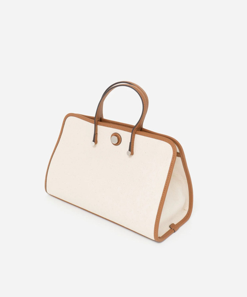 SOMEWHERE STUDIO(サムウェア ステュディオ)の人気シリーズ「PLAZA」から、毎日のコーディネートに自然と馴染むハンドバッグが登場。縁取りに沿うようにあしらわれたレザーパイピングが、シンプルながらも印象的なデザインを演出しています。バッグ本体には、軽量でナチュラルな風合いが魅力の生成りツイル帆布を採用。さらに撥水加工が施されているため、雨の日やちょっとした水滴・汚れも気にならず、日常使いに最適な仕上がりとなっています。ハンドルやディテール部分には、手ざわりの良い柔らかな牛革を使用。上質感と実用性を兼ね備えたデザインで、通勤・お出かけ・おしゃれママバッグとしても幅広く活躍します。開閉口にはオリジナルの引っ掛け式マグネットを使用し、スムーズな開閉とセキュリティ性を両立。程よい収納力で、スマホ・財布・鍵・コスメなどの必需品がしっかり収まり、コンパクトながらも頼れるサイズ感です。【メーカー情報】品番:S-004キャメル=ALMONDブラック=BLACK【SOMEWHERE STUDIO/サムウェア ステュディオ】バッグブランド 「PUNTI.( プンティ ) 」クリエイティヴチームが手掛ける、2025年秋冬にスタートする新ブランド「SOMEWHERE STUDIO( サムウェア ステュディオ ) 。」卓越したパターンテクニックを駆使した微細な変化から生まれる、最適なプロポーションを得意とする。【注意事項】※商品画像は、光の当たり具合やパソコンなどの閲覧環境により、実際の色味と異なって見える場合がございます。あらかじめご了承ください。※画像の商品はサンプルです。実際の商品と仕様、加工が若干異なる場合があります。※サイズ表記はあくまで目安となります。※その他の予約商品、通常商品との同時決済はできません。※入荷状況により、お届け予定が前後する場合があります。※お客様への発送が店頭販売より遅れる場合もあります。※追加生産商品は、一部の店舗、通販で販売中の場合がございます。予めご了承下さい。※商品を使用前に、タグ等に記載されている「取り扱い上の注意書き」「洗濯表示」を必ずご確認ください。※商品に不良が無い場合、包装紙および箱の彼損がございましても発送いたします。あらかじめご了承ください。