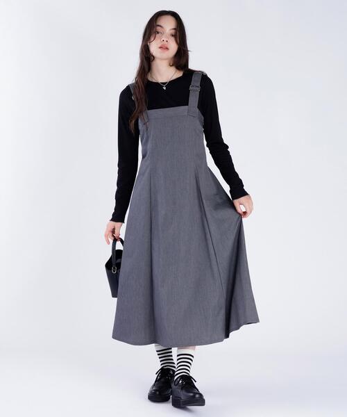 バックル付きの太めストラップが目を引く、モダンな印象のドレス。 ハリのあるライトツイル素材を使用し、美しいAラインシルエットをキープ。 胸元はスクエアカットでシャープな印象に仕上げ、カットソーやブラウスとのレイヤードに好相性。 シーズンレスに活躍する、きちんと感と抜け感を兼ね備えた一着です。 原産国:ベトナム 組成:ポリエステル65% 綿35% 実寸情報 36(S) バスト:76cm/身丈:118cm/ウエスト:78cm/ヒップ:114cm 38(M) バスト:82cm/身丈:120cm/ウエスト:84cm/ヒップ:118cm 40(L) バスト:84cm/身丈:123cm/ウエスト:88cm/ヒップ:120cm モデル身長/171cm、着用サイズ/38 (##)