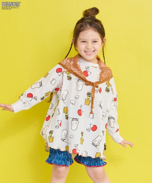 【ここでしか手に入らない!ピーナッツワッフルビッグロンT】■デザインスヌーピーの総柄を贅沢に使用したデザイン。ポップな総柄プリントをベースに表情豊かなPEANUTSの仲間たちのイラストがプリントされた見ているだけで楽しくなる一枚。袖口リブやラウンド裾のメロウ仕様が、さりげないこだわりポイントです。■スタイリングゆったりとしたAラインシルエットで一枚でもサマになります。デニムやレギンスと合わせてカジュアルダウンするのもおすすめ。PEANUTSの仲間たちを主役に、小物はシンプルにまとめるのが◎■生地感柔らかく凹凸感のあるワッフル素材を使用。通気性がよく、さらっとした肌触りでロングシーズン活躍します。動きやすく、デイリー使いにぴったりの快適さです。++++++++++++++++++++++++透け感:少しあり伸縮:あり厚み:普通++++++++++++++++++++++++■XSのみ肩ボタン付き■ネームタグ付き■同柄・リンクコーデアイテムキッズサイズ・【PEANUTS】スヌーピーワッフルフレアパンツ:0000152018※モデルが着用している画像は、照明や日光などの撮影時の環境により実物と異なる色味になる場合がございます。商品単体の平置き画像を実物に近いお色味になるよう努めておりますので、お色味のご確認は平置き画像をご参照くださいませ。※お使いのモニター環境によっても実物のお色味と異なって見える場合がございます。予めご理解の程よろしくお願いいたします。ハートマークをポチッ!気になる商品はお気に入り登録をお忘れなく!商品のお気に入り登録をすると...[再入荷][残り1点][セール情報]を受け取れます。MARKEY'Sをお気に入り登録すると...[新商品][再入荷]の情報をいち早く受け取れます。