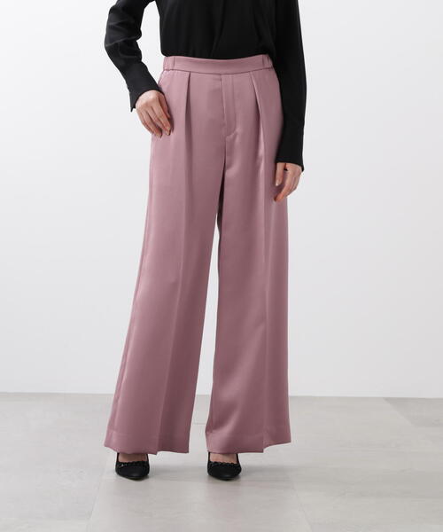 ヴィンテージ風の光沢がこなれた雰囲気のサテンパンツ脚のラインが響きにくいワイドレッグで、ウエストタックとセンタープレスラインが脚のシルエットをきれいに演出します。ウエストサイド~バックウエストはゴム仕様のため、フィット感がありストレスなくお召し頂けます。生地にヴィンテージの風合いがあるため、サテンでもフォーマルになり過ず、デイリーにお使い頂けます。ニットやヒールとの相性が良く、たっぷりとした生地感と光沢がグラマラスなパンツです。 【素材説明】 ヴィンテージのような表情が特徴のポリエステルサテン。ウーリータイプの糸を使用しているため、落ち感がありながらもふくらみがあり、シワになりづらいのが特徴です。タンブラー加工によってナチュラルな光沢感を与えています。 【商品特性】 ショートパンツ裏地付き/左脇ファスナー開き/サイド~バックウエストにゴム入り/前ポケットx2/後ろポケットは飾り/ストレッチ性あり/くるぶしが隠れる丈◆お買い物をよりお楽しみいただくために◆・「商品のお気に入り登録」で完売カラーの再入荷やラスト1点、セール通知を受け取ことができます。・「ブランドのお気に入り登録」で新商品の入荷情報など、いち早く受け取ることができます。
