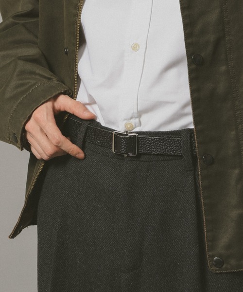 床革を使用した上品なガチャベルトサイズ調整もしやすく利便性の高い1本ですーーー■ポイントきれいめなスタイルにも使いやすいガチャベルトです。床革を使用することで、フェイクレザーとは違った高級感が漂います。バックル部分はサイズ感を試行錯誤し、スマートな見え方になるようにしています。帯にはシボの入った表面シールドを付けることで、傷が目立ちにくく全体的に上品な印象に仕上がります。ピンがない分お好きなところでサイズ調整もできるので、ご体型問わず使いやすいデザインです。スラックスなどのきれいめなコーディネートにおすすめです。着用時に金具が滑らないよう裏地にコーティングを施していないので、汗や雨でしめった場合、他の衣服などに多少色がうつることがあります。ーーー