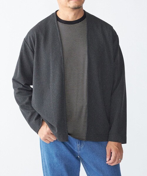 人気のノーカラーカーディガンが今季も登場!【素材特性】ハニカム組織の程よい中肉ジャージー素材を使用。機能面に優れており4WAYストレッチでウォッシャブル、防シワ性も備えています。【デザイン】今シーズンからサイズ感を大きく見直し、よりキレイめに着用できるようサイズを調整。主に肩幅・身幅をコンパクトに修正し、ビジネスでもより使いやすいサイジングに。カジュアルシーンは勿論、ビジネスシーンでも対応できる幅広いアイテムになります。【スタイリング】インナーはTシャツやバンドカラーシャツでスッキリとコーディネートするのがおススメ。オンオフ兼用できTシャツでカジュアルスタイルに、ビジネスシーンでシャツの上から冷房対策で着用する等、幅広くお使いいただけます。もちろんパンツもチノやデニム、スラックスまで様々なテイストに対応可能です。【注意事項】※末永く愛用頂く為に、アテンションタグ・洗濯ネームを必ずご確認の上、着用又はお取り扱いください。※撮影環境による光の当たり具合やパソコン・スマートフォンなどの閲覧環境によって、実際の色味と異なって見える場合があります。 商品の色味は商品単体で撮影した画像をご参照ください。※画像の商品はサンプルです。 実際の商品と仕様、加工、サイズが若干異なる場合がございます。