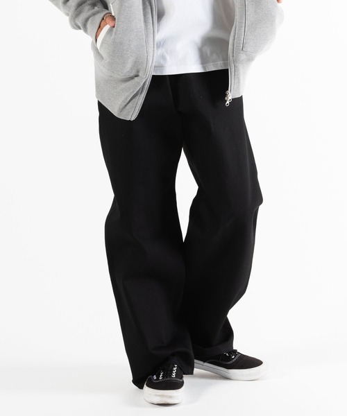 ニューヨークを拠点として活動する『Cliff Creative Projects』とのコラボレーションアイテム。リーバイス66前期の製品を研究し開発された14オンスのデニム生地を採用。異なる数種類のムラ糸を使い、66前期の特徴でもある縦のシャープなムラ感を再現。ヒップ、わたり、膝、裾を広くすることで今までにないワイドシルエットを再現。右後ろポケットに重ねてCliffのロゴをプリント。 ※商品と袋がくっつかないように製品袋内に粉末が微量に入っておりますが、商品の品質を正常に保つために使用しております。 特に黒い製品にはその粉末が折り目等に目立って汚れのように見えてしまうことがございますが、製品上問題はございませんのであらかじめご了承をお願い致します。 気になるようでしたら、濡れ布巾等で拭き取っていただければ簡単に落ちるものとなっております。