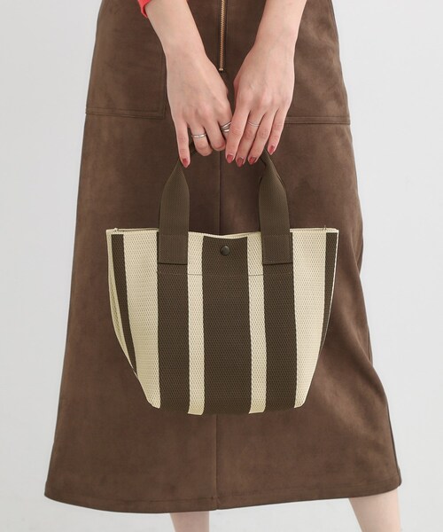 【デザイン】 本体をニットで仕上げているので、やわらかくカジュアルな雰囲気に仕上げました。 ストライプ、へリンボン、ヒョウ柄と3柄ご用意しました。 ランチサイズなので普段使いにおすすめです。 【仕様】 ・ポケット数:内側×1 ※照明の関係により、実際よりも色味が違って見える場合があります。また、パソコン・スマートフォンなどの環境により、若干製品と画像のカラーが異なる場合もございます。 店舗へのお問い合わせ商品番号:C70-04032 ●製品寸法: 00:高さ22.5cm 幅(上部)33cm 幅(下部)20cm マチ14cm 持ち手上がり9.5cm 備考:重量:約245g