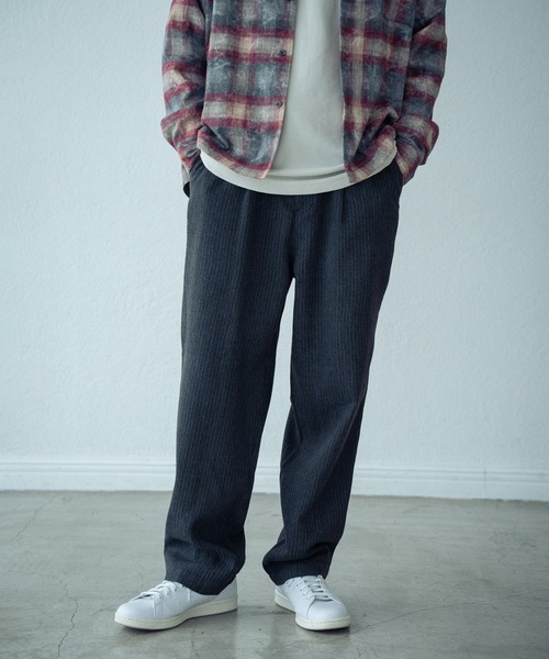 【上品なストライプ!ジンコードテーパードパンツ】細かな畝が特徴のジンコード素材にストライプ柄を掛け合わせた、上品さとカジュアル感を兼ね備えた一本です。ワンタック入りの腰まわりはゆとりがありながらも、裾にかけて自然に細くなるテーパードシルエットで、すっきりとした印象に仕上がっています。《こなれた雰囲気を演出する一本》程よい存在感のあるストライプ柄が、シンプルなトップスと合わせるだけでこなれた雰囲気を演出します。通気性の良い素材で、これからの季節に最適です。《オンオフ問わず活躍する万能パンツ》オンにもオフにも活躍する、大人のための万能パンツです。シャツと合わせればきれいめに、Tシャツと合わせればカジュアルにと、幅広いスタイルを楽しめます。【Rattle Trap/ラトルトラップ】時代と共に変化し続けるライフスタイルにおいてリアルに共存することができるタウンウェア。『ワーク』『ミリタリー』『デニム』をベースに素材とディティールにこだわりを持ちながら今を表現。【画像に関するご注意】※画像はサンプルです。仕様が変更になることがありますのであらかじめご了承ください。※商品の色味につきまして、お客様のお使いのPCのモニター環境、設定により実際のカラーと画像の色味が違って見える場合が御座います。予めご了承の上、ご注文下さい。※屋外での撮影画像は光の加減で、実際の商品より明るく見える場合が御座います。商品の色味は生地アップ・スタジオ撮影の画像をご参考下さい。