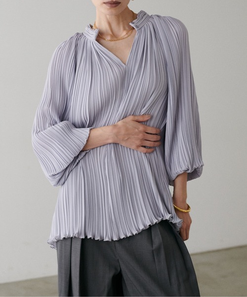 【2025AW LARUTA】プリーツスモックブラウス■Designモックネックと開きのあるネックラインの前後2WAY仕様で楽しめる、プリーツ素材のブラウス。たっぷりとした袖のボリュームと、落ち感のある素材が描くドレープ感が印象的。裾に向かって緩やかに広がるシルエットが女性らしさもありつつプリーツが縦のラインを強調し、ふんわりとしながらもすっきり見えるシルエットに。ネックと袖口に施したギャザーが、さりげなく甘さを添えるデザインです。■Stylingデニムやスラックスと合わせて抜け感を楽しむスタイリングや、ロングスカートと合わせたクラシカルな着こなしにも◎ニットやジャンパースカートのインナーにも使いやすく、一枚で存在感を放ちながらも着回しの効くアイテムです。■Fabric柔らかな落ち感のある素材に細かいプリーツを施し、軽やかさと上品さを兼ね備えた質感。着るだけで自然な揺れ感が生まれ、女性らしい印象を引き立てます。=======================透け感:ややあり裏地:なし伸縮性:あり光沢感:なし=======================▼ コンセプト<LARUTA>シンプルだけど洗練されていて、それでいて自然体。着飾るよりも着ていてリラックスできる、そんなお洋服を纏いたい気分。※着用、お取り扱いの際は、商品に付いている品質表示とアテンションタグを必ずご確認ください。【お気に入り登録でお得な情報がいっぱい】・「商品のお気に入り登録」で再入荷通知や、ラスト1点の通知、セール通知をいち早く受け取ることができます。・「ブランドのお気に入り登録」で新商品や再入荷など、お得な情報を受け取ることができます!※店舗の入荷時期は商品によって異なります。店頭の在庫状況につきましては各店舗にてお問い合わせください。※撮影時の光の関係で、画面上の画像と実際のお色とでは若干の色差が生じる可能性がございます。また、ご覧いただいているモニター画面や、お使いのブラウザによっても、お色の違いがございますことをあらかじめご了承くださいませ。