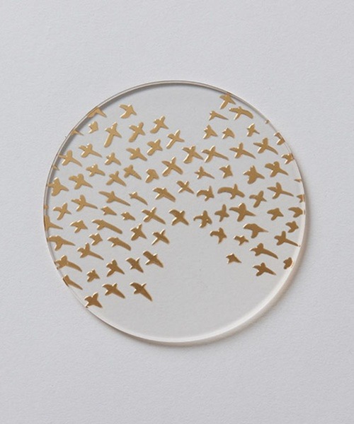 箔押しのパターンのコースター。素材の透明感と、手書き風の味わいがある箔押しパターンが特徴的。ガラスコップは勿論、湯呑でもマグカップなど和洋どちらの雰囲気にも合います。贈り物にもおすすめです。toumeiトウメイは樹脂加工のプロフェッショナル集団「株式会社益基樹脂」を母体とし、若手デザイナーと職人の技術で常に新しい感覚の日本製品を創造しています。アクリル樹脂をベースに木材などの自然素材や箔押しによる異素材との組み合わせや、オリジナルグラフィックによる演出で素材が持つ可能性を引き出します。独自の視点で日本製品の美を見つめ直し、次世代や海外に向けて樹脂製品との豊かな暮らしを提案いたします。原産国 : 日本(埼玉県)食洗機×耐熱温度 : 80℃※高濃度アルコール、塩素系漂白剤はひび割れや箔の変色が発生する場合がございます。※清掃および消毒には中性洗剤を薄めたもの、次亜塩素酸水の希釈液で行う事をお勧めいたします。洗っていただく際は柔らかいスポンジ等で優しく洗ってください。