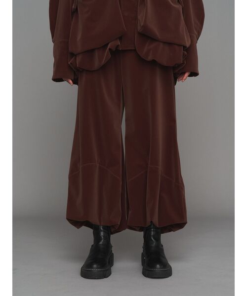 滑らかな手触りでありながら程よいハリ感のある上質な別珍素材を使用したデザインパンツ。バルーンとコクーンを組み合わせた裾のデザインがポイントです。ゆったりとしたシルエットで履き心地◎上品な光沢のある素材感が特徴的なのでシンプルなスタイリングのポイントにオススメです。この商品は【522550001101 VELVET HEM GATHER HOOD CT】とセットアップでご着用いただけます。 ----------------- 透け感:なし 生地の厚さ:普通 裏地:なし 伸縮性:なし ウエスト:一部ゴム -----------------※画像の商品はサンプルです。実際の商品と仕様、加工などが若干異なる場合があります。 また、生産過程上の都合により洗濯表記や混率、サイズスペック等が多少変更になる可能性がございます。予めご了承ください。▼商品のお気に入り登録お気に入りアイテムの再入荷・在庫1点などの通知を受け取ることができます。▼ブランドのお気に入り登録新作アイテムの入荷や人気アイテムの再入荷、クーポンなどいち早くブランドのお得な情報を受け取ることができます。