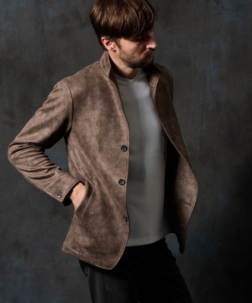 ■デザイン三つ釦タイプのスタンドジャケット。素材の特徴を活かす為、シンプルなデザインにしております。衿を開いて着た時のVラインが印象的で、脇接ぎを前に持って来る事による視覚効果でスッキリシャープに仕上げました。■サイズウエストシェイプを入れた綺麗なシルエットで、細身のサイズ感です。■素材ポリエステルのマイクロファイバーで編まれたカットソーポンチ素材をスウェード調に起毛したジャージ素材にオリジナルのプリント(Mottled Smoke=まだらな煙柄)を施しました。ジャージ素材ならではの横張り感・ストレッチ性はそのままに、マイクロファイバーを起毛した滑らかでソフトな風合いが特徴。伸縮性:あり生地の厚さ:普通裏地:なし■注意点衿端に付属としてプラスチック線材を使用しています。局部的に繰り返し折り曲げたり、その部分にアイロンを当てないで下さい。※画像の商品はサンプルです。 実際の商品とは仕様・加工・サイズ・素材が若干異なる場合がございます。※掲載画像の商品の色味は、撮影場所や光の当たり具合などにより色味が異なって見える場合がございます。 商品の色味は、生地アップの画像をご参照ください。 また、お客様のお使いのPC・スマートフォン等のモニター環境などにより色味が異なって見える場合がございます。 予めご了承の上ご注文ください。