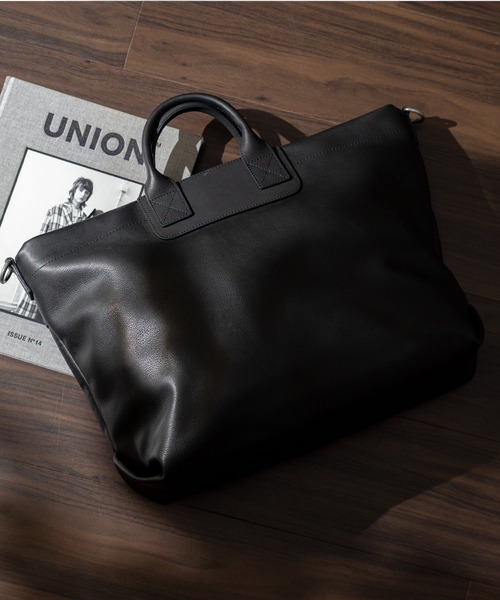 デザイン 本革2WAYトートバッグ(仕切りポケット付き) 仕切りポケットで整う、 大人のスマートビジネスバッグ。 ●横型デザイン A4サイズ対応、約12cmの広いマチがあり、たっぷり収納出来ます。 ●上質な牛革使用 大人の雰囲気を醸す柔らかな質感の牛革。自然と出るくったりフォルムが特徴。 ●ファスナー開閉 安全性の高いファスナー使用で、引手には本体と同素材の牛革を使用。 ●ショルダーベルト付き 2WAY仕様で、肩掛け・斜め掛けとスタイルを変えて使用可能。 ●便利な仕切りポケット 内側はファスナーポケットで2スペース収納が可能。整理整頓しやすい仕様です。 サイズ等 SIZE:高さ:約30cm / 幅:約45cm(上辺)約35cm(下辺) / マチ:約14cm ハンドル長さ:約28cm×幅:約1.5cm、持ち手高さ:約9cm ショルダーベルト長さ:約72~131cm×幅:約3.8cm(取り外し可能/調節可) 外ポケット:背面ファスナー付きポケット1 内ポケット:オープンポケット2、ファスナー付きポケット1、ファスナー付き仕切りポケット1 ショルダーベルト重量:約152g バッグのみ重量:約924g 素材:牛革(韓国製) 仕様:2way バッグのメイン開閉口はファスナーになっております。 金具色:シルバー [カラー] ブラック 【注意事項】 革は、水分に大変弱く、シミ・水ぶくれの原因となり、多少の色落ち、色移りがありますのでご注意下さい。 もし雨や水に濡らした場合は、すばやく乾いたやわらかい布で水気を取り、形を整えて必ず陰干しして下さい。 間違ってもドライヤー・ストーブ等の高温での乾燥はおやめ下さい。 ◆商品のお気に入り登録◆ 完売カラーの再入荷通知や、ラスト1点の通知、 セールの通知も受け取ることができますので、是非ご登録ください。 ◆ブランドのお気に入り登録◆ 新商品や再入荷などの情報を受け取ることができますので、是非ご登録ください。