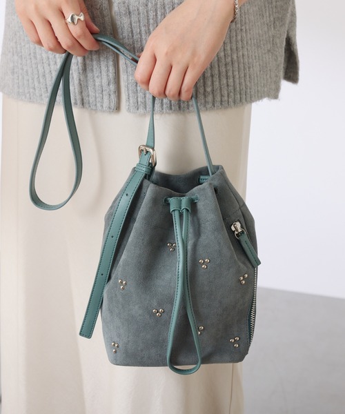 スタッズ×スェードの合わせが今年らしいミニショルダー 【POINT】 ・スェード調の生地にスタッズを散りばめたキャッチーなデザインのショルダーバッグ。 ・ハードな印象にならないよう、スタッズの大きさや配置のバランスにこだわりました。 ・巾着型の間口と、サイドにはファスナーも付けているのでスムーズな出し入れが可能◎ ※スェード調の生地は摩擦で色移りする可能性がございます。 【素材】 本体:合成皮革 裏地:ポリエステル100% 【サイズ】 縦:20cm 横:15cm 底:8.5cm 【気になる商品は「お気に入り」登録を】 ハートマークをクリックし、お好きなカラーを選んでお気に入りに登録すると 入荷情報や残り1点の通知、完売カラーの再入荷、セール情報などを受け取ることができます。 ※撮影場所やお使いのモニター環境により若干お色味が異なる場合がございます。 特にロケの撮影では明るく見える傾向にございます。詳細撮影画像で色味をお確かめくださいます様お願いいたします。 ※サンプルで撮影をしております。若干の仕様が変更になる場合がございますので予めご了承の上ご注文くださいますようお願いいたします。 ※サンプルでの採寸のためあくまで目安となります。予めご了承ください。 ≪返品・交換について≫ ・着用後、洗濯後の返品・交換は致しかねます。 ・商品到着後、着用前に商品状態のご確認をお願い致します。