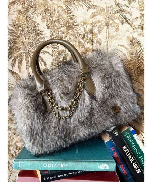 <<スタイリングのアクセントに!大容量ボストンバッグ!>>フェイクファー素材を使用したEVRISらしさ全開のインパクトのあるバッグ。取り外し可能な異なる2種類のチェーンチャームでエッジを効かせてトレンド感も◎ハンドルは厚めにしていて、握りやすい仕様です。今季トレンドのフェイクファー素材で、持つだけで普段のスタイリングもグッと今っぽくなります。しっかり荷物が入るボストンバッグ型。500mlのペットボトルも横にして入れられる大きさです。※チェーンチャームが取り外し可能のデザインと変更になります。