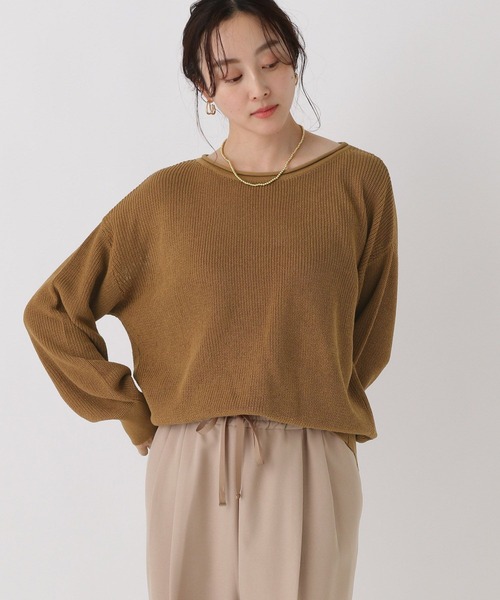 \ざっくりなのにきれい見え!秋ムード満点の一枚/【悩みに“効く”ポイント】ダレにくい編地で、ざっくりニットでもだらしなく見える心配なし。後ろ着丈が長めのシルエットで体型をカバーしつつ、安心感をプラス。さらりとした編地が秋らしい表情を引き出し、コーデを格上げします。衿のロールデザインやサイドの柄編みがニットならではの魅力を演出。【シルエットの魅力】・後ろ丈が長めで縦ラインを強調し、すっきり見え効果をプラス。・上品なざっくり感が、スカートにもパンツにも相性抜群。・アクセントとなる柄編みがシンプルすぎないほどよい抜け感を。【スタイリング】・デニムと合わせてカジュアルながらこなれ感のあるスタイリングに。・フレアスカートやタイトスカートで女性らしい仕上がりにも◎。・ショートブーツやスニーカーで秋の着こなしをさらに楽しめます。【お手入れのご注意】ライトベージュは耐光性にご注意ください。ブラックは湿摩擦による色移りにご注意ください。ひっかけやピリングには十分留意してお手入れください。【気になる商品は「お気に入り」登録を】ハートマークをクリックし、お気に入りに登録すると在庫残り僅かや、再入荷通知などの情報を受け取ることができます。