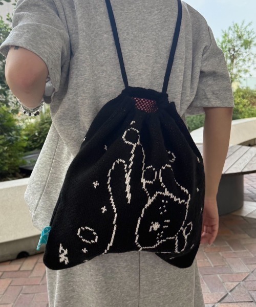 【Nerd out XU】usagi knit knapsack / 【ナードアウトエックスユー】ウサギプリントニットナップサック
