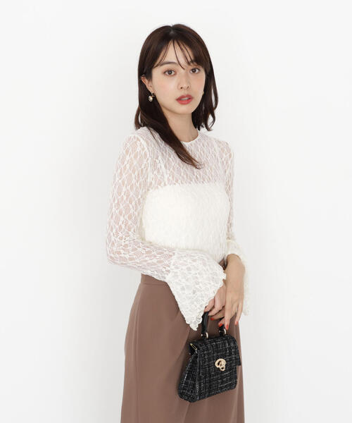 キャミソールやタンクトップの上から1枚着としてはもちろん、寒くなったらレイヤードアイテムとしても便利なレーストップスです。カジュアルな中にも袖口のフレアにスリットが入り、華やかな印象に見せてくれます。合わせるアイテムによって、カジュアルにもキレイめにも着回せるデザインです。<素材>伸縮性のあるレース素材を使用しています。<詳細>仕様・開閉なし裏地・なし透け感・あり / 光沢・なし / 伸縮性・あり生地の厚さ・薄手※モデルの着用画像の場合、光の当たり具合により、実際の色味と異なって見えることがございます。色味は、商品単体の画像をご参照ください。<商品のお気に入り登録>お気に入りアイテムの値下げ・再入荷・在庫1点などの通知を受け取ることができる便利機能ですので気に入ったアイテムはお気に入り登録がおすすめ!<ショップのお気に入り登録>新商品や再入荷、セール、クーポン配布などお得な情報を受け取ることができます。●撮影はサンプル商品で行っている為、仕様とサイズが異なる場合がございます。●スタジオ及び屋外で撮影した着用画像は、光の当たり具合で色味が違って見える場合があります。予めご了承ください。