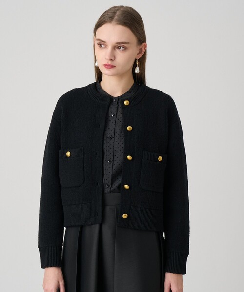 【Autumn & Winter Collection 2025】 軽く表情のある表面感が魅力のウールブークレ素材。 上質な素材を使用しているので、毛羽立ちも少なく、素材制作に時間をかけた、長く着用頂けるクオリティです。 ドロップショルダーでゆとりのあるシルエットのショートブルゾン型のカーディガン。 メタル釦がアクセントになり、羽織るだけでカジュアルにも、エレガントにも着まわせる1枚。 コート前の時期のライトアウターとしても重宝する分量感で、今秋活躍しそう。 【WEB限定カラー】beige(11)ベージュ:淡いベージュカラーは合わせるアイテムを選ばない万能色。ダークカラーのアイテムと合わせてトーンダウンにも、ワントーンコーデにもお勧めな愛されカラーです。 【付属】なし 【裏地】なし 【透け感】なし 【開き・留め仕様】前中心ボタンあき 【伸縮性】あり 【ケア方法】クリーニング 【着用感・生地の厚さ】しっかりしたダブルフェース オフホワイト着用 model:174cm 着用サイズ:38 ベージュ・グレー・ブラック着用 model:175cm 着用サイズ:38 【ANAYIサイズ表】 34サイズ:5号 XSサイズ相当 36サイズ:7号 Sサイズ相当 38サイズ:9号 Mサイズ相当 ・「商品のお気に入り登録」や「ブランドのお気に入り登録」で新商品や再入荷通知、セール通知などのお得な情報を受け取ることができます。 ・照明の関係により、実際よりも色味が違って見える場合がございます。 またパソコン・スマートフォンなどの環境により、製品と画像のカラーが異なる場合もございます。予めご了承ください。