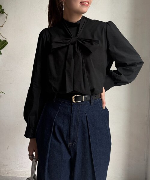 オンオフ問わず使える万能アイテム■pointワードローブに揃えておきたいボウタイブラウス。細めのリボンが甘くなりすぎず程よくフェミニンな印象にしてくれます♪ハリのある素材とボリュームスリーブがオフスタイルにも使いやすい万能アイテム!取り入れるだけでトレンド感溢れるコーディネートに仕上がります。■coordinateきれいめスカートやパンツでオフィスカジュアルに、デニムでラフに合わせるのもオススメです。ジャンスカやサロペットのインナーとしてはもちろん、ジレと合わせたレイヤードコーディネートなど幅広く楽しんでいただけます。▼オススメスタイリング▼タックスウェットパンツベルト付きタックワイドパンツタックデニム軽ニットカーディガンタックジャンスカシャギーベスト×ニットワンピース■fabricポリエステル75%綿20%ポリウレタン5%--------------------------------------------------裏地:なし光沢感:なし伸縮性:あり生地の厚さ:普通洗濯方法:手洗い可--------------------------------------------------※生産の都合上、お届け時期が前後する場合がございます。ご注文いただいた予約商品のお届け時期の確認は、注文履歴ページより行えます。※商品画像は製品前サンプルにより着用イメージです。光や角度により、実物と色味が異なる場合がございます。また表示のサイズ感も実物とは若干異なる場合もございますので、ご了承ください。※着用、お取り扱いの際は、商品についている品質表示とアテンションタグを必ずご確認ください。--------------------------------------------------♡をクリックでお得な情報をお知らせいたします。<商品お気に入り登録>お気に入りアイテムのお値下げ・再入荷・在庫ラスト1点など通知を受けることができます。<ブランドお気に入り登録>Chez toiの新商品・再入荷・SALE・クーポン配布などお得な情報を受けることができます。--------------------------------------------------Cheztoi/シェトワフランス語で「あなたの家」という意味。自分にまっすぐでそしてしなやかに生きる女性に向けたブランドです。