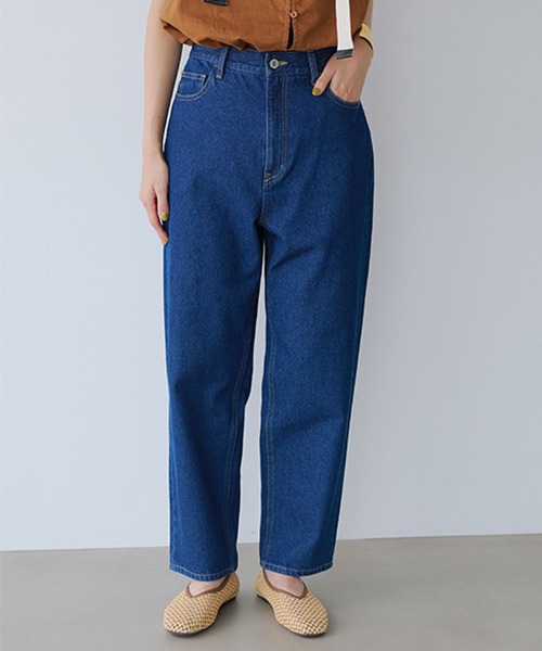ベーシックで使いやすい定番アイテム 体型カバーとスタイルアップが叶うテーパードデニムパンツ ーーー 【素材】 10オンスくらいの重すぎない程よい厚みのデニムを使用。 コットンのさらりとした生地感は、シーズンを通して快適にご着用いただけます。 【デザイン】 ほんのりルーズなテーパードデニムパンツ。 太ももやお尻周りはゆったり、腰や足首は体のラインに沿うので絶妙なゆとりが体型カバーとスタイルアップを叶えます。 ウエストはファスナーあき+バックにゴムが入っており、履き心地も抜群◎ 前はスッキリ、後ろはゆったり着用できるので、もたつかず綺麗に着用できるのもポイントです。 ボトム パンツ デニム ジーンズ テーパード ーーー 【スタイリング】 カジュアルにTシャツやスウェット合わせはもちろん、シャツやブラウスにヒールを合わせた女性らしい着こなしもおすすめ。 膝下はすっきりとしているので、ワンピースやチュニックのレイヤードパンツとしてもご着用いただけます。