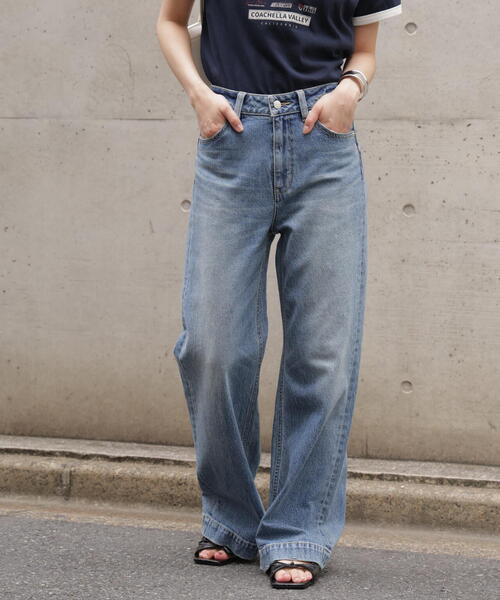 FREE'S MARTで大人気の累計販売5万本突破したベーシックワイドデニムをベースに「PICCADILLY」とのコラボデニムパンツが登場!どの骨格でも履けるベーシックワイドでしっかりとした素材ながらもしなやかでややストレッチもあるのでとても動きやすくストレスフリーなデニム!本格的なヴィンテージライクな仕上がりです。FREE'S MART別注のキャメルステッチを施したヴィンテージライクな12.5オンスデニムを使用し、美脚効果抜群のセミフレアシルエットに仕上げました。【PICCADILLY・ピカデリー】1977年フランス・パリで誕生したスキニージーンズの元祖と言われるブランド。特徴あるそのフレンチ・ジーンズのスタイルはパリの人々の心を捉え、時代の先端をいくブランドとして注目を集めていました。※こちらの商品はXSサイズの展開がございます.◆サイズ目安◆XSサイズ→身長150cm-152cm ウエスト57cm-59cm※モデルの着用画像の場合、光の当たり具合により、実際の色味と異なって見えることがございます。色味は、商品単体の画像をご参照ください。商品特性■透け感:なし■生地の厚さ:普通■裏地:なし■伸縮性:ややあり■光沢:なし■シルエット:スタンダード---------------------------------------------------◆商品のお気に入り登録◆お気に入りアイテムの値下げ・再入荷・在庫1点などの通知を受け取ることができます。◆ブランドのお気に入り登録◆新商品や再入荷、セール、クーポン配布などお得な情報を受け取ることができます。---------------------------------------------------
