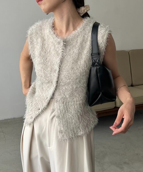 1枚で女性らしく華やかに 商品ポイント ・フェザーヤーンにスパンコールが編みこまれた素材が特徴 ・同系色の小さめスパンコールが上品さをプラス ・肩先まであるノースリーブで露出感控えめで着やすい ・裾がリブ仕様でインしなくてもスタイルアップ スタイリングポイント ・冬はシアー系のロンTをインナーに入れても◎ ・フレアスカートやワイドパンツなどボリュームのあるボトムにもマッチ 【ベージュ着用アイテム①】アウター:Wテーラージャケット、パンツ:2タックワイドパンツ 【ベージュ着用アイテム②】2タックワイドパンツ 【ブラック着用アイテム①】ベルト付ツイルパンツ 【ブラック着用アイテム②】ストレートルーズデニム ********************** 透け感:なし 裏地:なし 伸縮性:あり 光沢感:あり ********************** ▼洗濯方法 手洗い可能 ※スパンコールは、引っ掛かり易く・ほどけ易いので、着用や洗濯時の取扱いにはご注意ください。 ※濃色の物は汗や摩擦により色落ちすることがありますのでご注意下さい。 ※素材の特性上、着用中、他の衣料に羽毛が付着することがあります。 ※着用時の摩擦や洗濯により表面に毛玉が発生しますので、発生した毛玉ははさみ等でカットしてください ※撮影場所やお使いのモニター環境により若干お色味が異なる場合がございます。 特にロケの撮影では明るく見える傾向にございます。 ※商品はサンプルで撮影をしております。若干の仕様が変更になる場合がございますので予めご了承の上ご注文くださいますようお願いいたします。 ▼商品のお気に入り登録 完売カラーの再入荷通知や、ラスト1点の通知、セールの通知も受け取ることができます。 ▼ブランドのお気に入り登録 新商品や再入荷など、いち早くブランドのお得な情報を受け取ることができます。