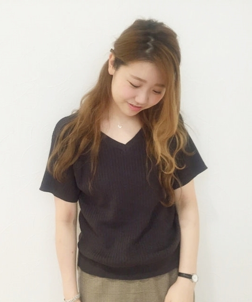 Kastane(カスタネ) 変形リブでシンプルなデザインに表情を加えた半袖プルオーバーです。程よくゆとりを残したシルエットをバランスよくまとめるVネック&サイドスリットがポイント。合わせるボトムスを選ばずインナーとしても活躍するので、デイリーワードローブのレギュラーアイテムとなってれます。