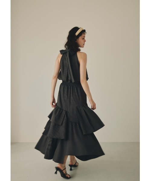 ランダムに切り替えたティアードデザインが、 歩くたびに揺れてドラマチックな印象に。ウエストはゴム仕様で、シワになりにくく ストレスフリーな着心地ながら、 広がりすぎないシルエットで大人な印象に。夏はTシャツやタンクトップと合わせたり 秋はニットトップスとブーツなどを合わせてもバランスの良い1着です。 back ribbon check short top とセットでの着用もおすすめです。 model:167cm 伸縮性:あり. 裏地:あり 光沢感:なし 生地の厚さ:普通